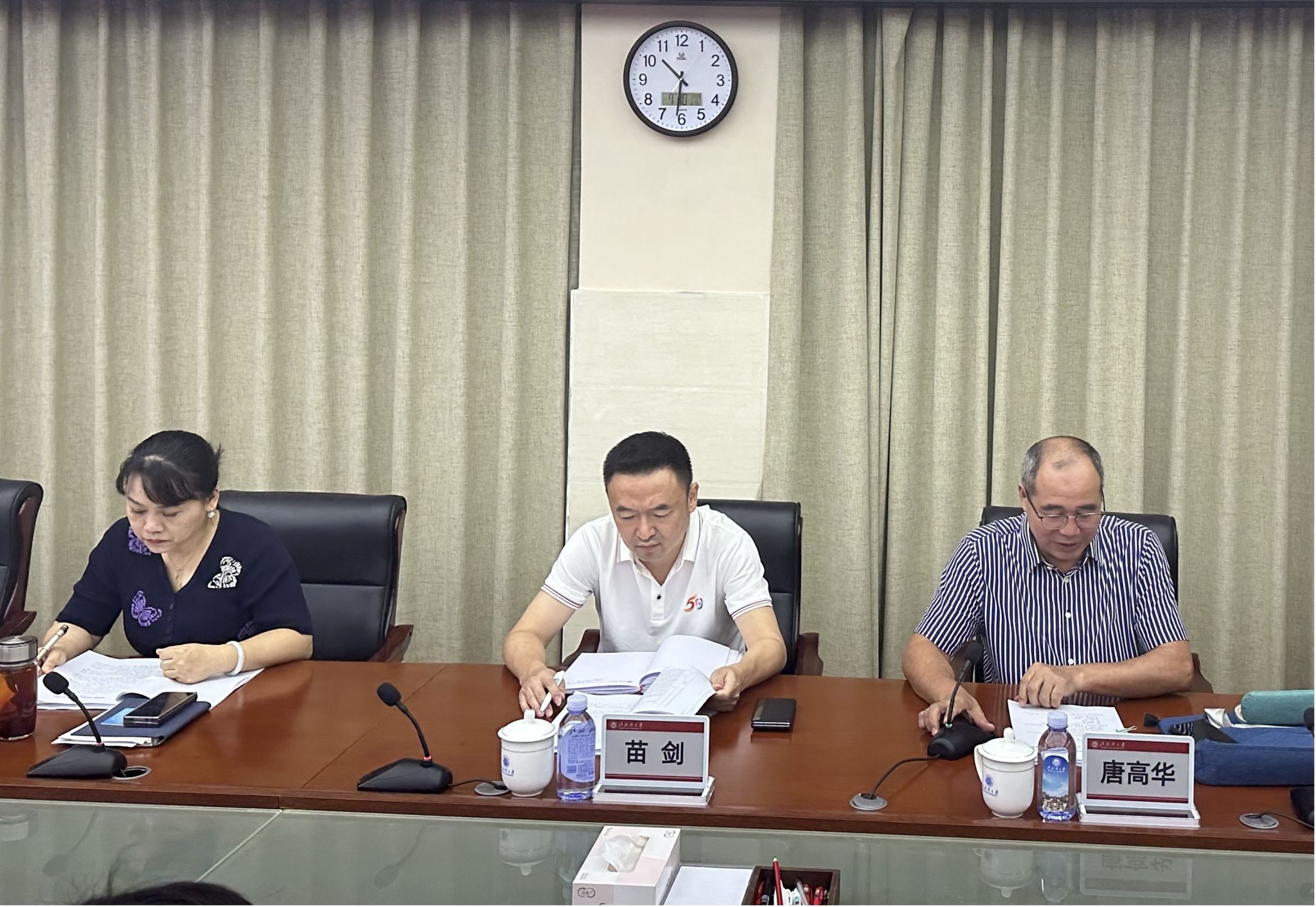 7月10日上午,学校在办公楼523会议室召开2026-2030年广西新增博士学位授予单位立项建设暨学校学位授权点申报规划会议。校党委副书记、校长苗剑出席会议并讲话,校党委副书记唐高华主持会议,校长助理周丽娟出席会议。研究生院和17个学院领导参会。