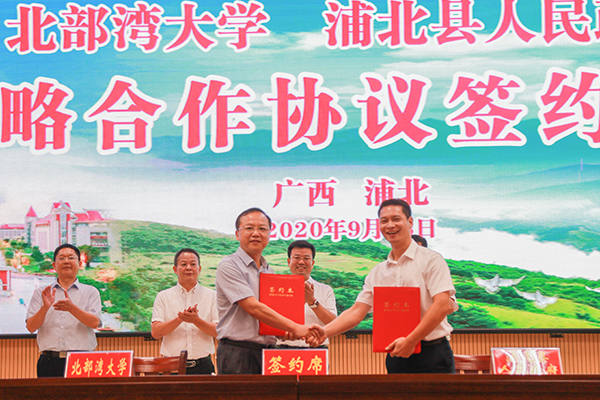 9月28日,我校与浦北县签署战略合作框架协议。学校党委书记赵君,浦北县委书记古保华、县人大党委会主任班博文、县长李遥、县政协主席陈增平与我校党校办、科技处、发规处等部门负责人共同见证签约。学校副校长黄鹄,浦北副县长梁光宁分别代表双方签约。