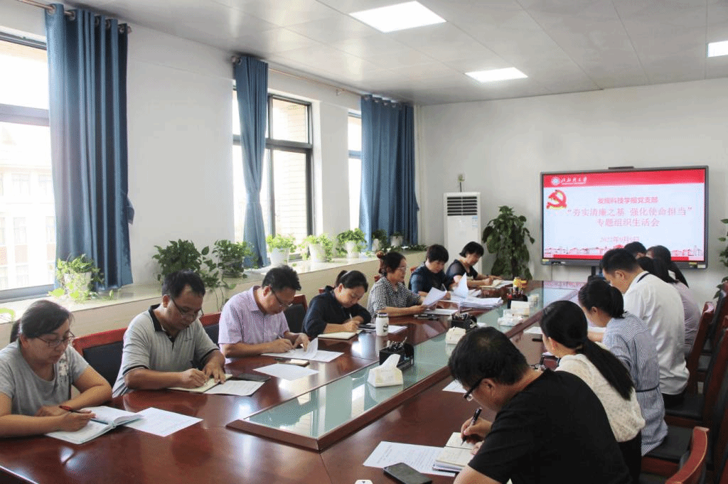2022年9月9日下午,发规科技学报党支部在办公楼463会议室召开了“夯实清廉之基,强化使命担当”专题组织生活会支部暨支部学习大会。会议由支部书记刘琼同志主持,全体党员参会。