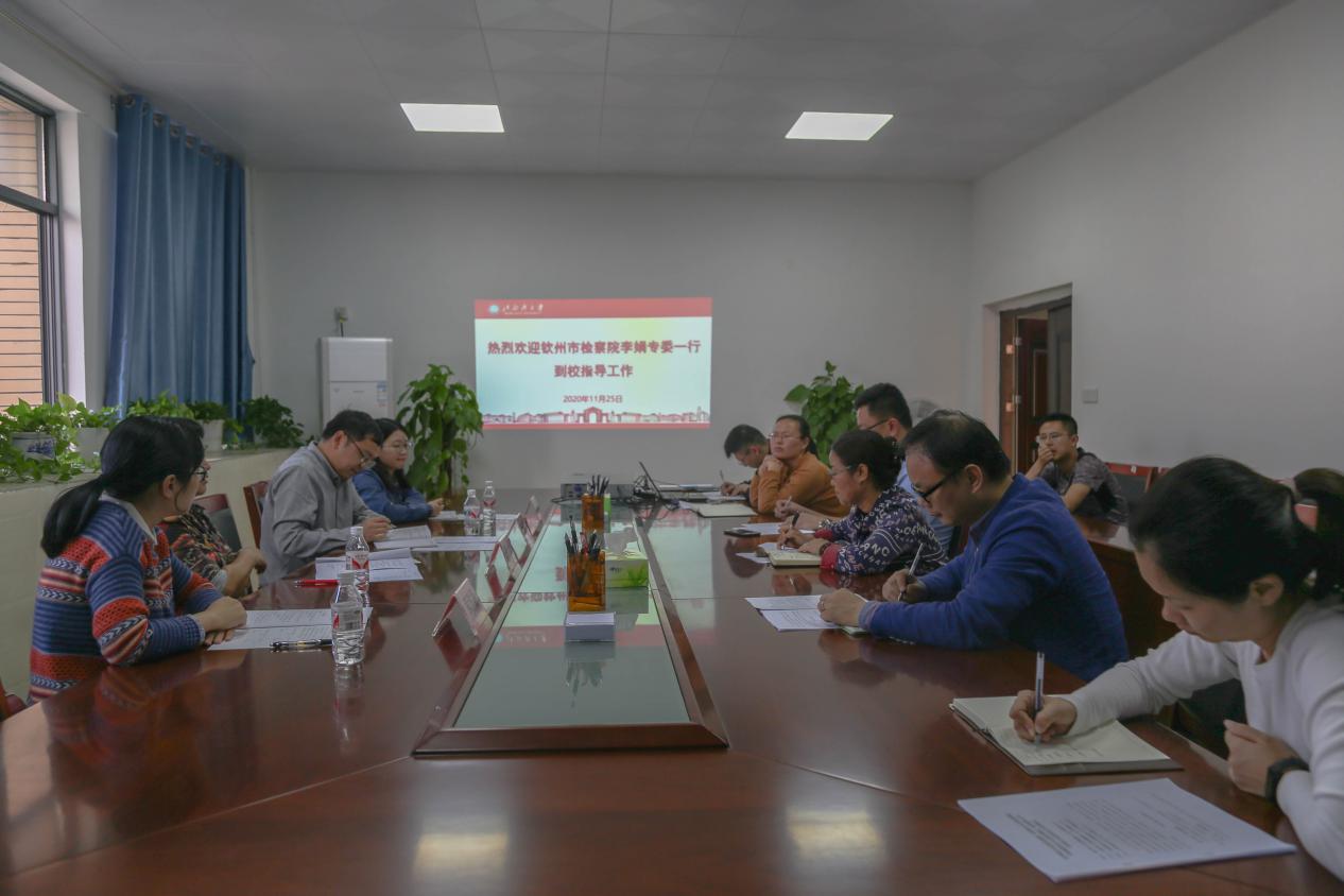 2020年11月25日,为进一步深化我校向海经济专题调研的成果,钦州市人民检察院检察委员会专职委员李娟一行到我校洽谈检校合作相关事宜。