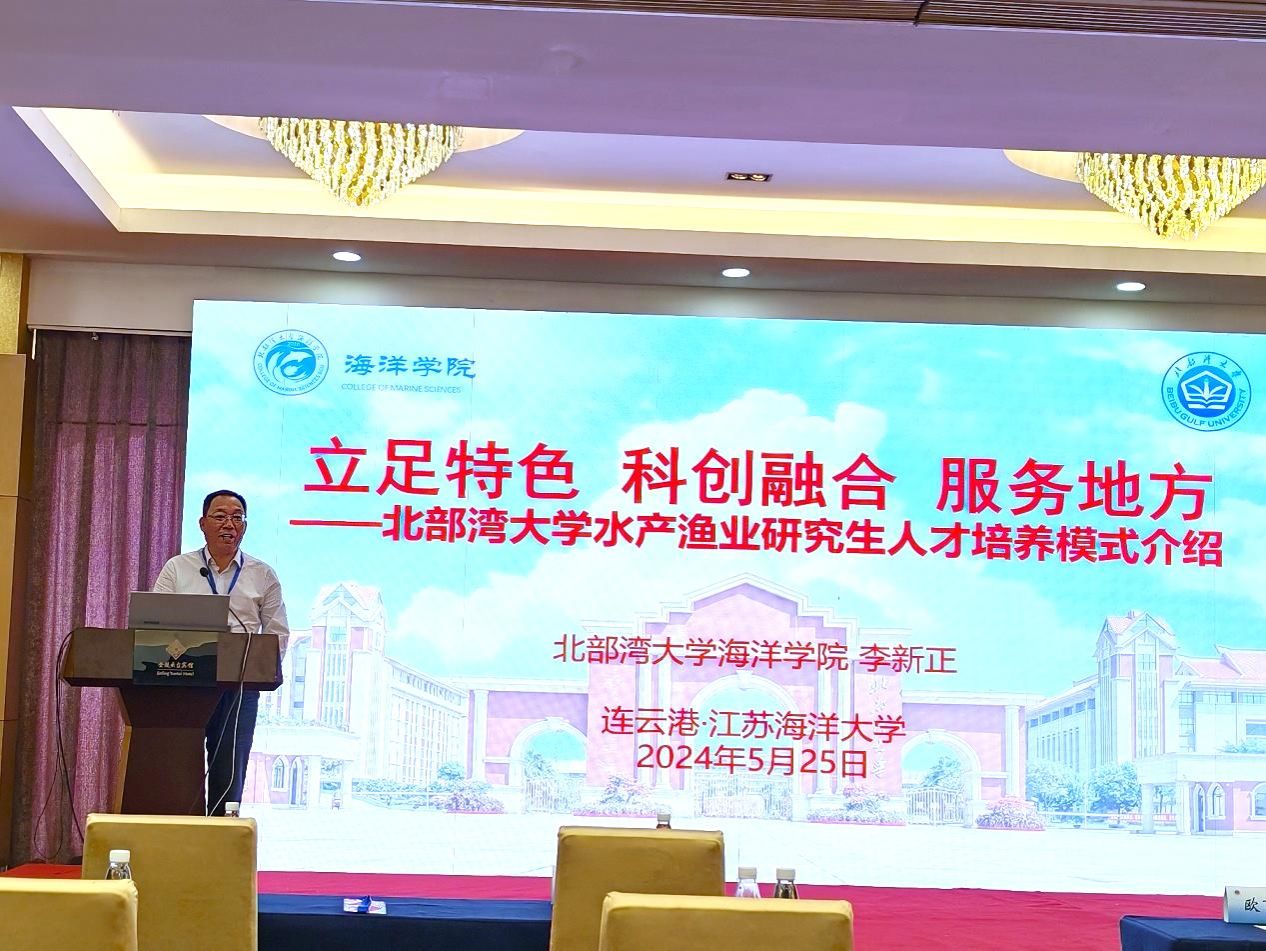 副校长尹艳镇率研究生院、海洋学院主要负责人及相关骨干一行6人出席会议。尹艳镇在会上介绍了北部湾大学的基本情况,并邀请各高校参加将于明年在我校举办的水产渔业协作组2025年学术年会,受到了与会高校代表的热烈响应。海洋学院院长李新正在会上做了题为“立足特色、科创融合、服务地方——北部湾大学水产渔业研究生人才培养模式介绍”的主题报告,介绍了北部湾大学的区域优势及我校水产渔业研究生人才培养的经验和成果,受到了与会代表的关注。