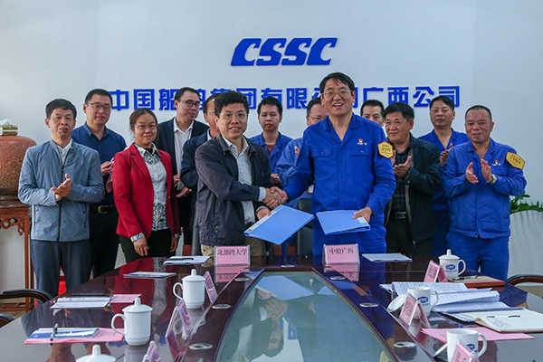 11月4日,学校校长韩峻峰,副校长黄鹄一行7人赴中船广西船舶及海洋工程有限公司开展服务向海经济调研并与对方签署了创新中心合作协议。